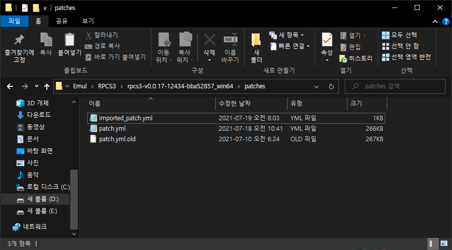 2. imported_patch.yml을 rpcs3 폴더\patches에 넣습니다