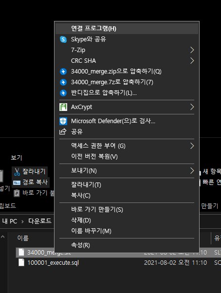 방금 설치한 DB Browser For SQLite 연결프로그램으로 해서 열어줍니다
