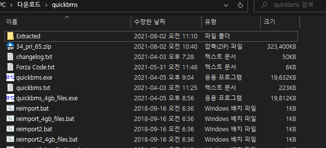 Forza Code.txt를 quickbms.exe로 드래그해서 실행합니다