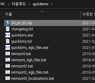 DLC이름.zip( 제경우 34_pri_65 ) 파일을 quickbms.exe가 있는 경로에 옮겨줍니다