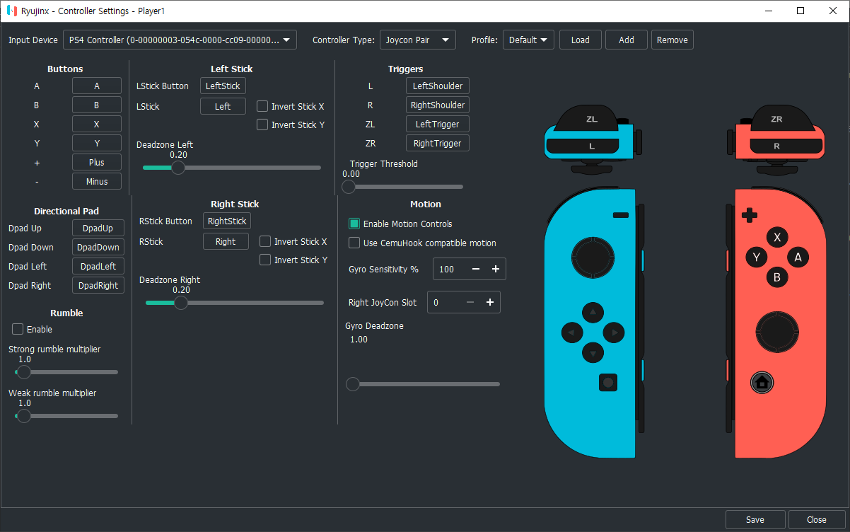 스위치 프로콘, 조이콘, 듀얼쇼크, 자이로지원 스마트폰, 스팀컨트롤러 등은 모션컨트롤( 자이로 ) 지원됩니다
