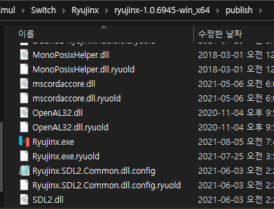 압축 풀고 publish에 들어오면 Ryujinx.exe 실행파일이 보입니다