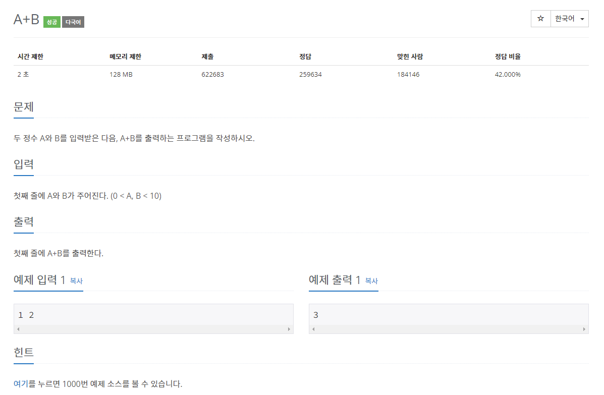 두 정수 A와 B를 입력받은 다음, A+B를 출력하는 프로그램을 작성하시오.