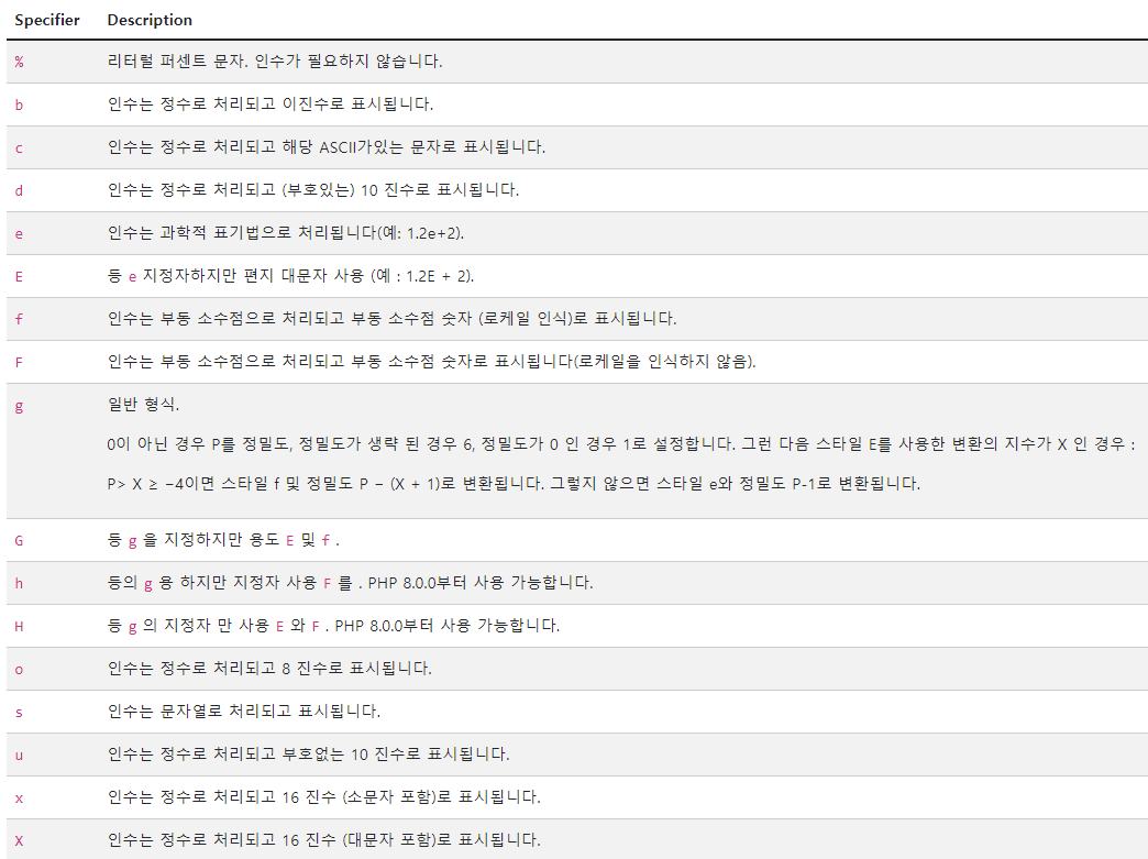 PHP - fprintf - (PHP 5, PHP 7, PHP 8) fprintf — 형식화 된 문자열을 스트림에 기록 Description format 에 따라