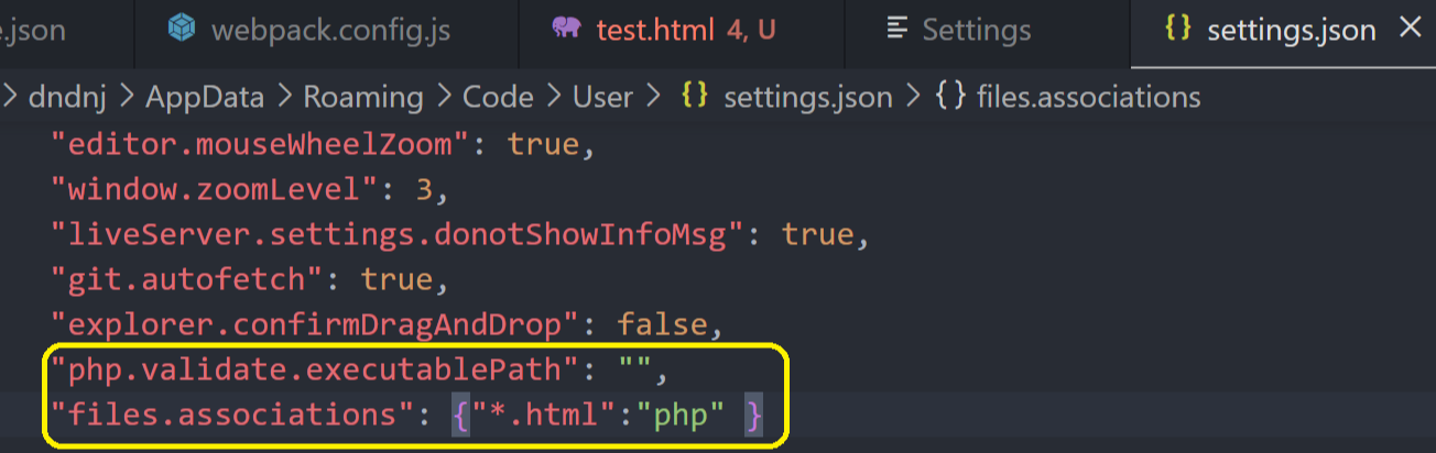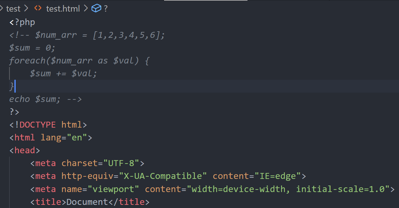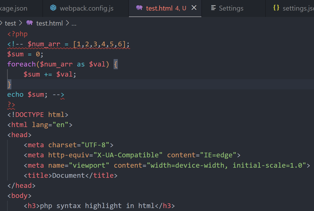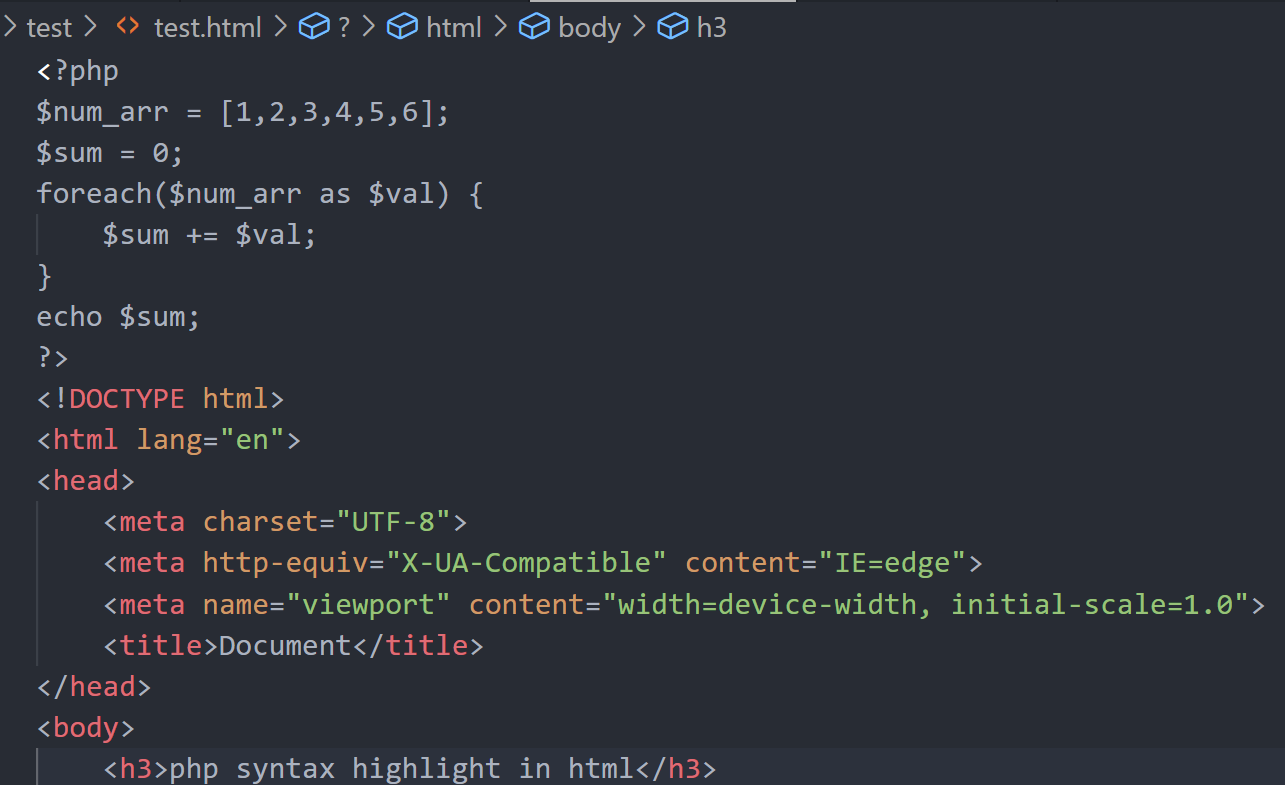 5. html 파일에서 php 문법들이 하이라이트되는 것을 확인!