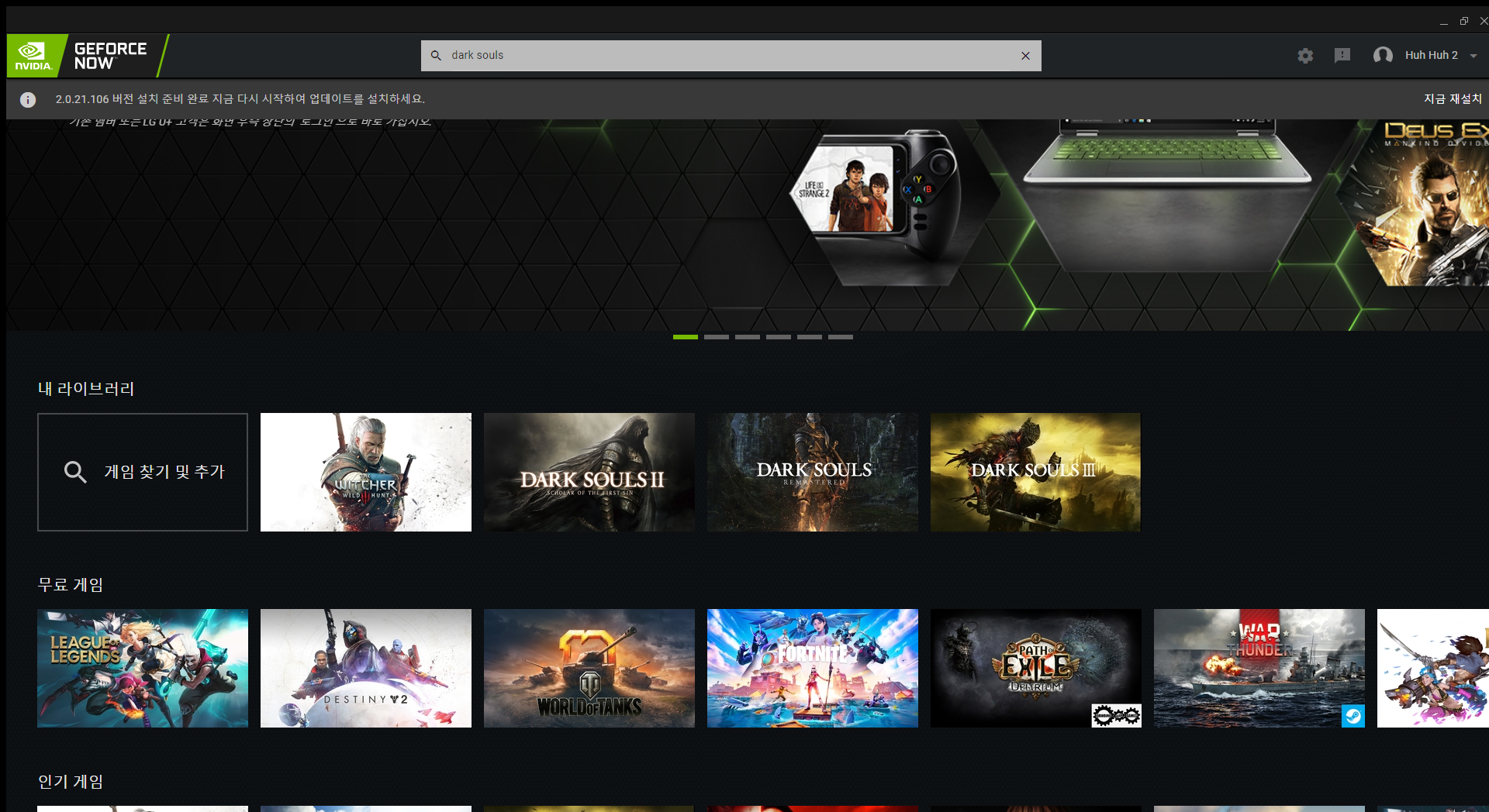 지원하는 게임이 많아서 정말 좋았고 설치시간 0초는 혁신이었습니다 ㅎ