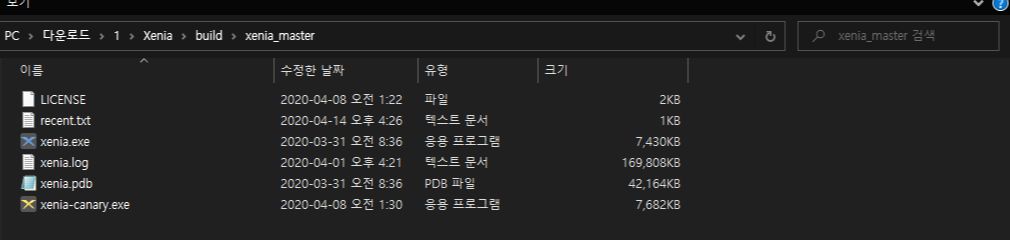 첫번째, Xenia 마스터빌드입니다