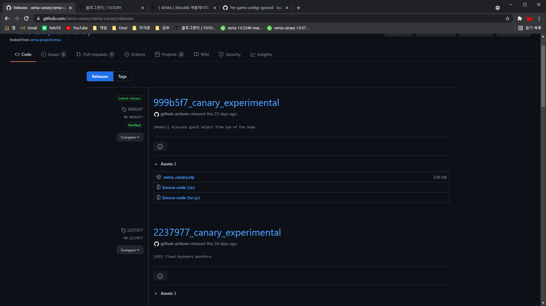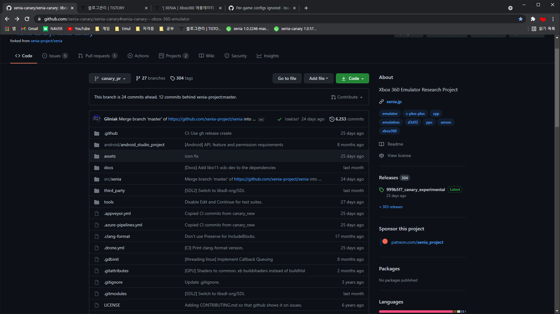 또 한가지 소개해드릴것이 Xenia Canary인데 아직 안정화되지않은 실험적인 기능의 PR을 병합해 만든 빌드입니다.