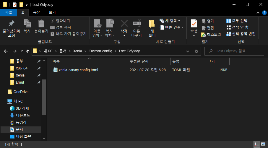 이렇게 오디세이가 잘 돌아가는 xenia 빌드와 config.toml 을 정리해두고 있습니다