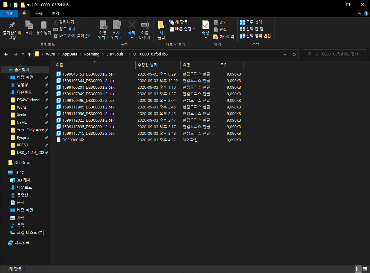 다크소울 우클릭해서 로컬 파일보기로 들어갑니다