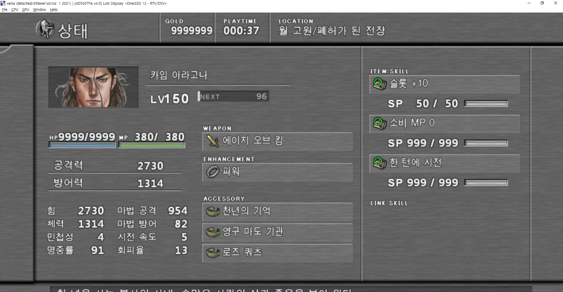 로스트 오디세이 Lost odyssey 1440p+프레임제한해제 PC 구동