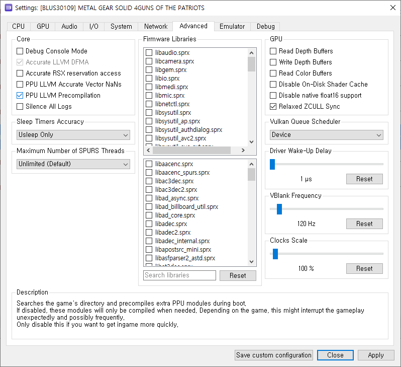 콘솔에서의 메탈기어솔리드4는 1024x768(720p)의 해상도와 가변60fps였습니다. rpcs3를 통해 최소 1080p, 그래픽카드가 좋으신 분은 2160p(4k)까지 업스케일하여 PC에서 구동하는 방법을 알려드리려합니다.