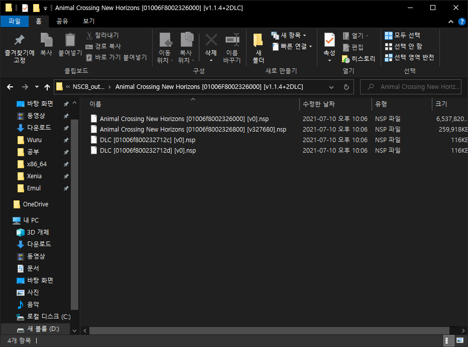 저는 오늘 동물의숲 통합 xci를 본편, 업데이트, DLC 각각 nsp로 분해해보려고 합니다